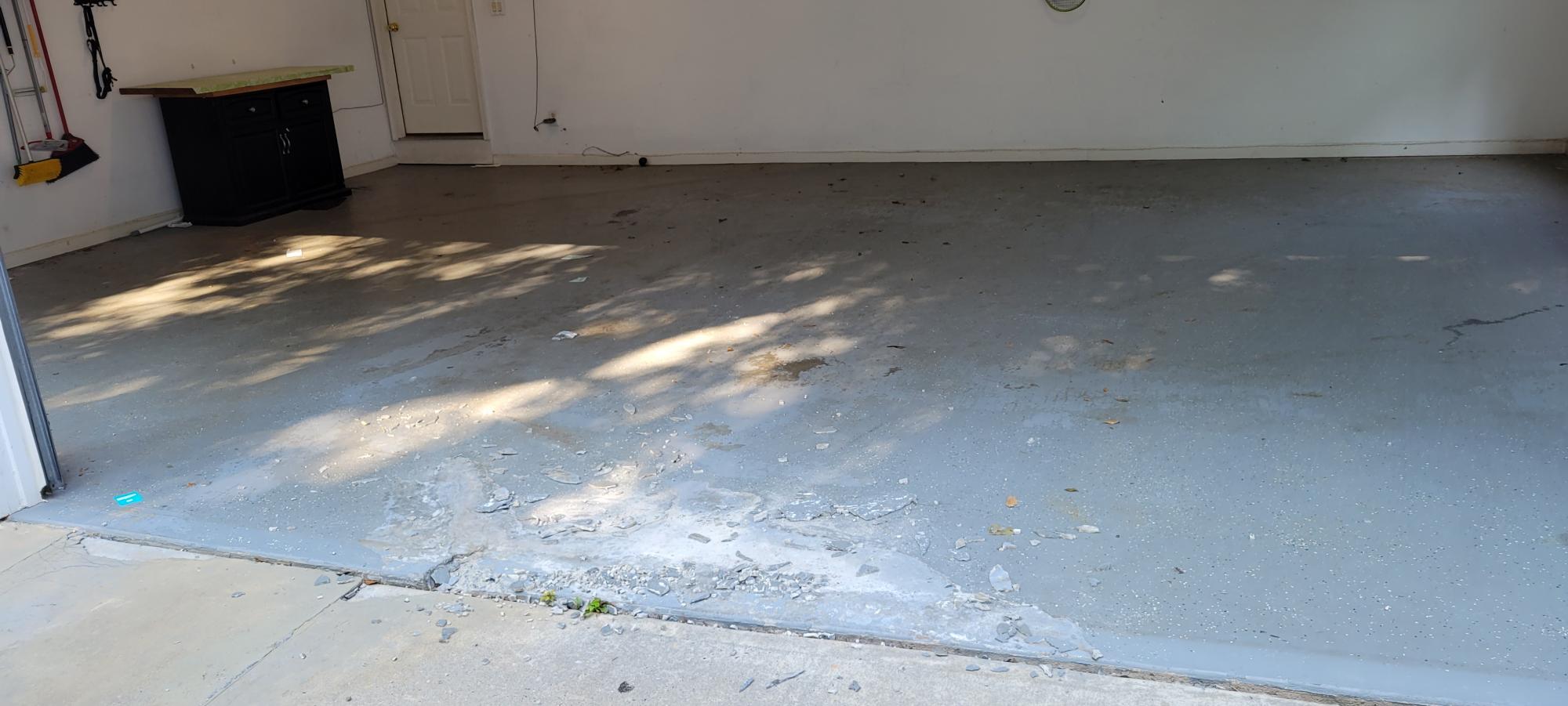 1. We grind the entire surface of your garage to get to the aggregate layer of your slab