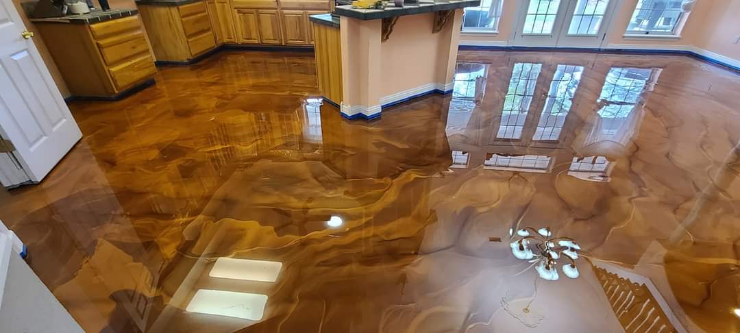 Metallic Epoxy flooring is beautiful, durable, water proof, easy to clean and will last forever!
